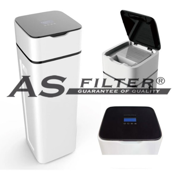 - Tapa abatible, con fácil acceso para relleno de sal.